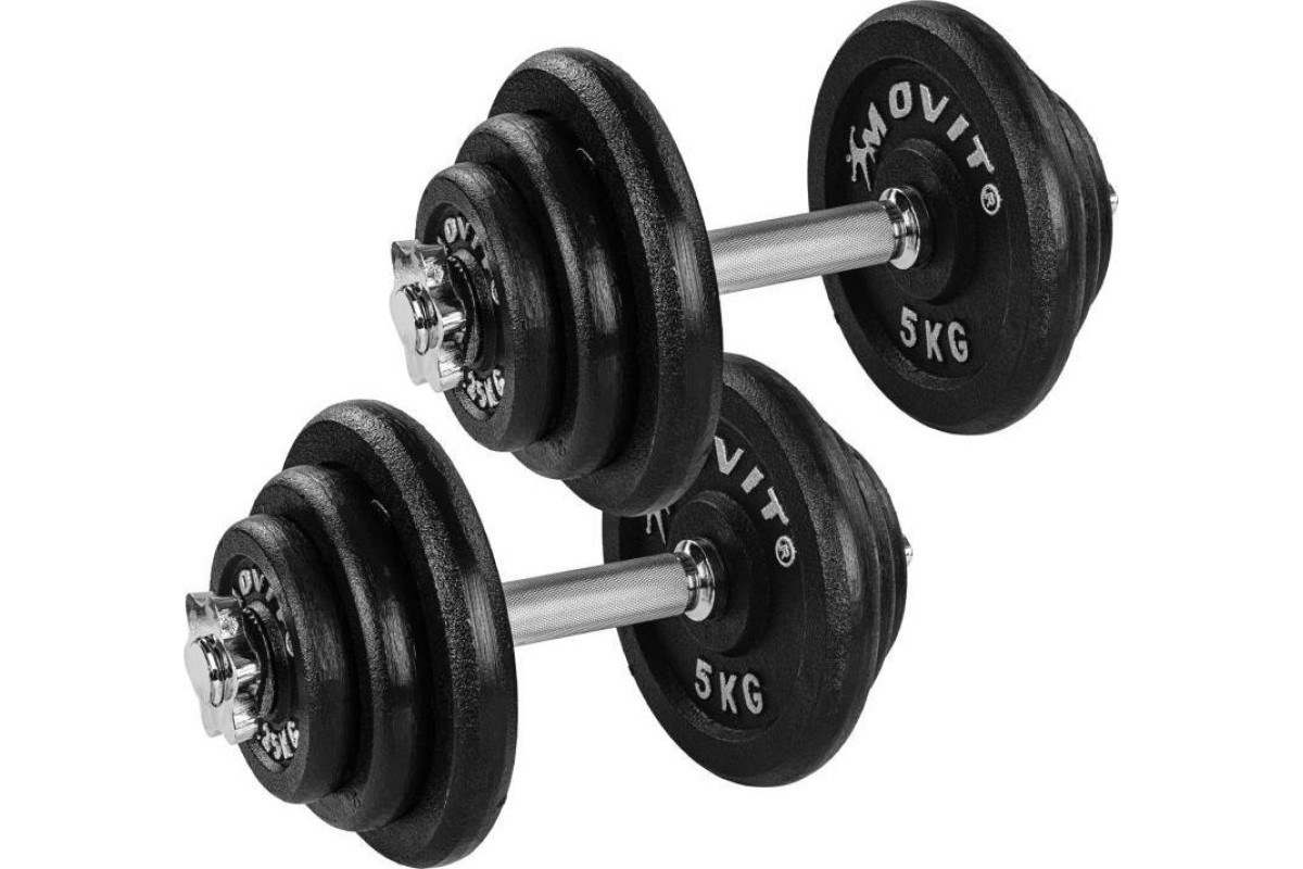 Вам більше не доведеться платити за дорогі відвідування фітнес-центрів, з цими гантелями ви зможете легко тренувати все тіло. Набір гантелей Movit Pro дуже компактний, тому не займає багато місця. Зірчасті замки гарантують, що вагові пластини завжди стабільно та надійно лежать на штангах. Вони оснащені нековзною ручкою, що забезпечує міцне захоплення при зміцненні. Поперечні канавки на ручці забезпечують легкий хват. Вантажі позначені вагою для кращого орієнтування. Технічні дані: Вага матеріалу: 100% чавун Матеріал замка зі зіркою: хромована сталь Діаметр тримача диска: 30 мм (стандартний розмір) Вага гантелі: 2 x 20 кг Вміст упаковки: Вага 4 x 5,0 кг Вага 4 x 2,5 кг Вага 4 x 1,25 кг 2 х штанга 4 х зірчастий затискач