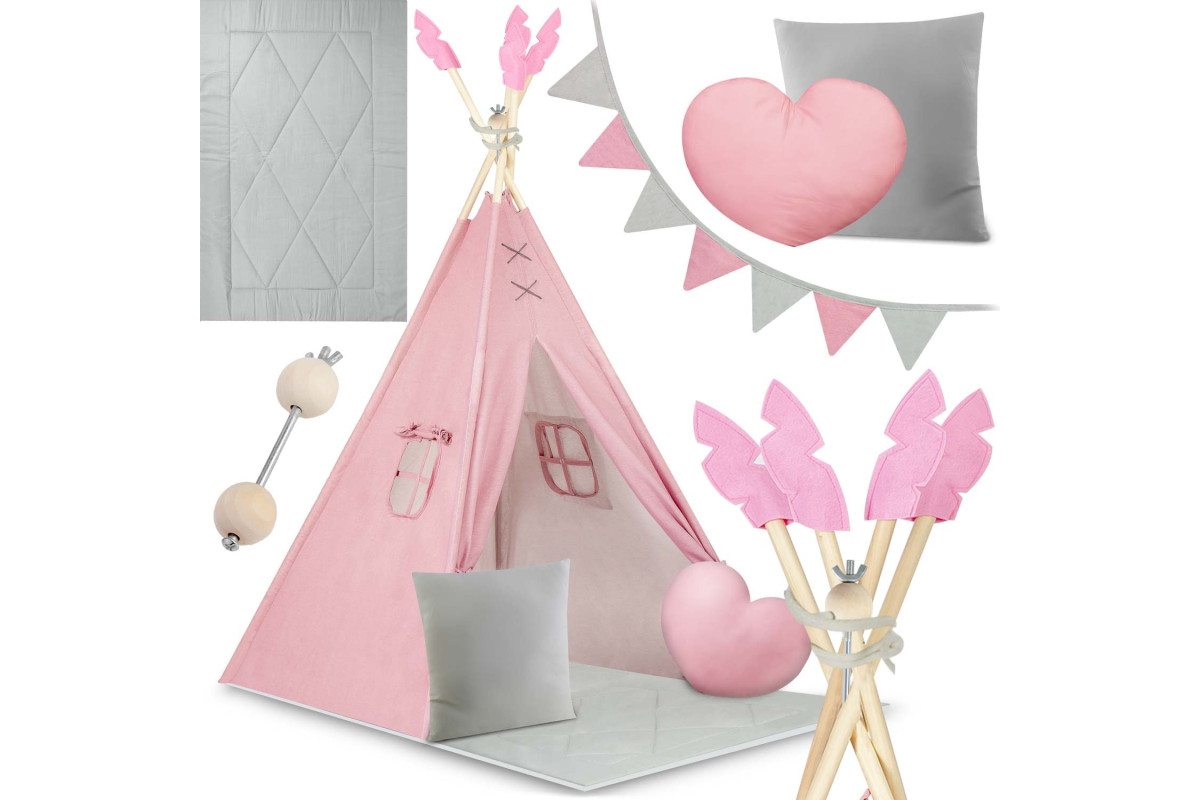 Цей вігвам доповнить інтер'єр дитячої кімнати. Виготовлений з натуральних матеріалів - безпечних і нешкідливих для здоров'я, гармонійні кольори з модними акцентами, відповідно до методу Монтессорі, легко складається і не займає багато місця, стійка конструкція + стабілізатор БЕЗКОШТОВНО, до трьох подушок і товстий ізоляційний килимок з нековзними трубками в комплекті.