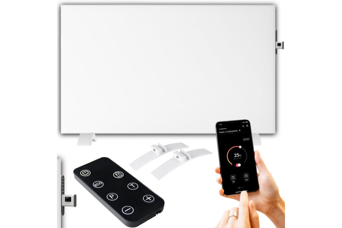 - Нагрівальний панель дає можливість управління за допомогою панелі на радіаторі, пульта дистанційного керування та зручного додатку.