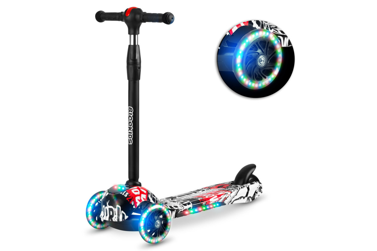 Завдяки різнокольоровому світлодіодному підсвічуванню на колесах, платформі та передній панелі кожна поїздка перетворюється на захопливу пригоду. Триколісна конструкція забезпечує стійкість, а керування здійснюється за допомогою нахилу корпусу, що допомагає дитині розвивати координацію та відчуття рівноваги.