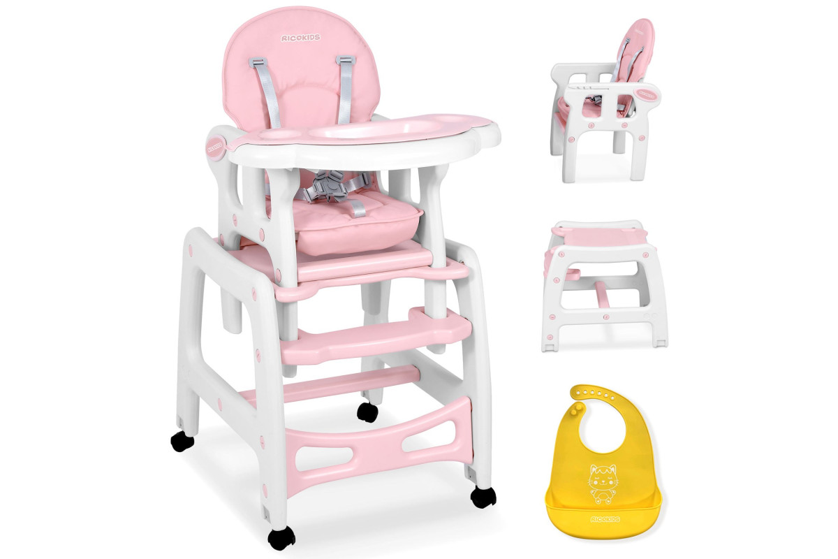 Стільчик для годування 5-в-1 Ricokids Sinco 57,5 х 104 см - рожево-білий
