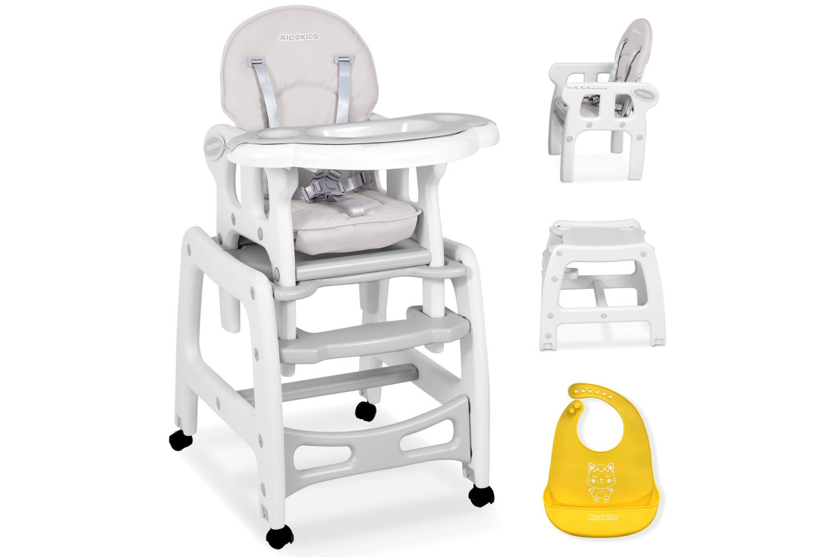 Стільчик для годування 5-в-1 Ricokids Sinco 57,5 х 104 см - сіро-білий