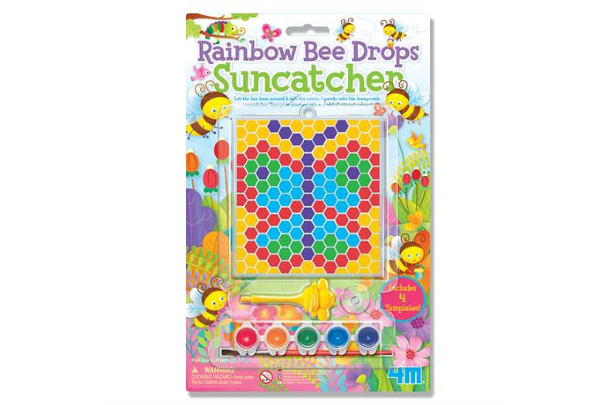 Комплект містить все необхідне для облаштування творчої майстерні будинку: прозора основа для вітража зі стільниками, паличка-бджола, пензлик, вітражні фарби. На вибір є 4 шаблони-картинки: метелик, квітка, рибка, сова. Візьміть зразок, що сподобався, покладіть зверху прозору заготовку. Розфарбовуйте стільники по черзі відповідно до кольору на шаблоні. Використовуйте паличку-бджолу та пензлик.