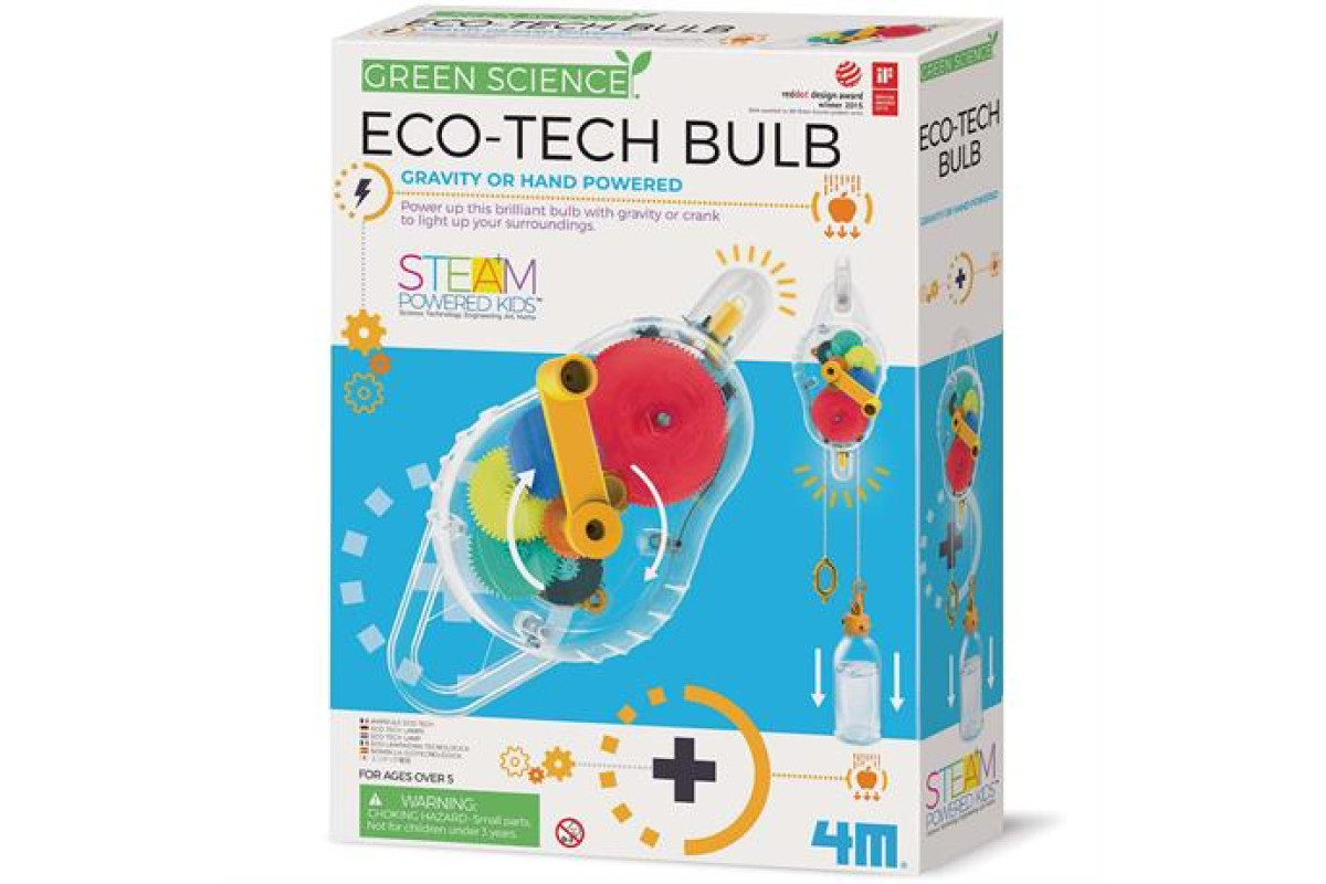 Набір для досліджень від 4M Еколамп дозволяє зібрати лампочку, яка працює за допомогою перетворення енергії. У комплекті є необхідні деталі та детальна інструкція з цікавими фактами.
