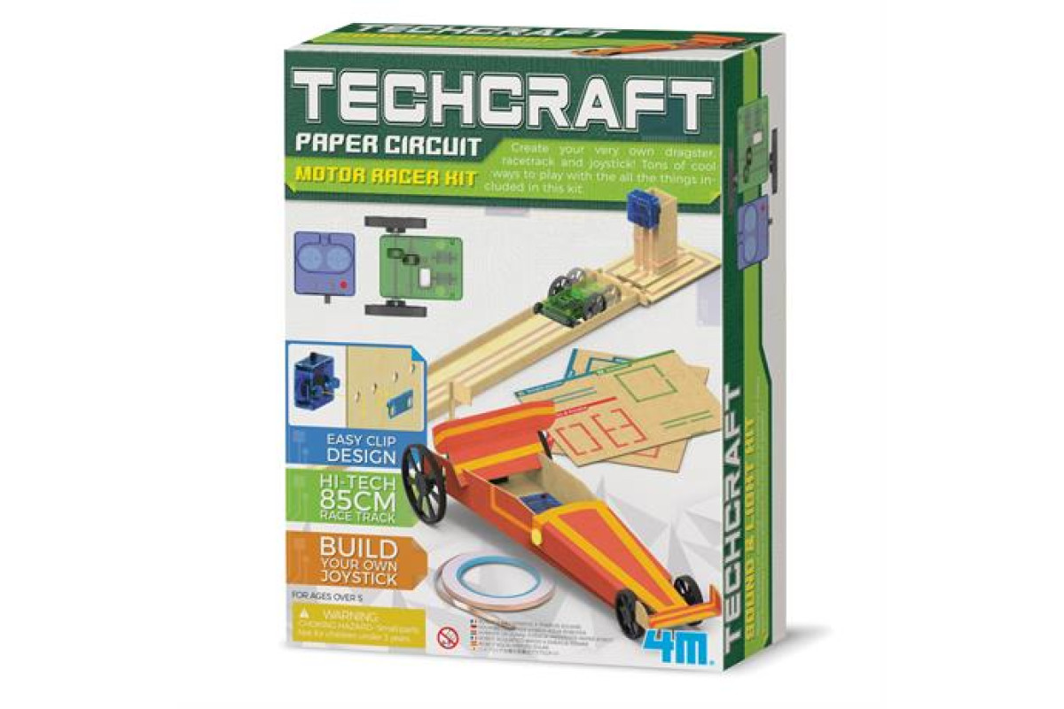 Створіть дві моделі перегонових автомобілів і трасу для них із науковим набором 4M Паперові схеми Перегонові машини. Вивчайте принципи фізики, весело граючи з картонними машинками та треком! Комплект оцінять хлопчики від 5 років.