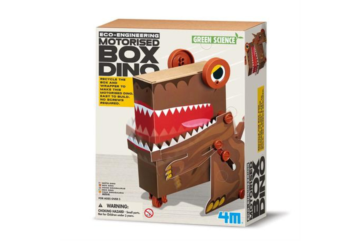 Науковий набір 4М Динозавр із коробок дає змогу перетворити порожні коробки на рухому конструкцію. Коробковий дино-робот може їздити, рухати щелепою та лапами! Набір створений для дітей від 5 років дошкільного віку.