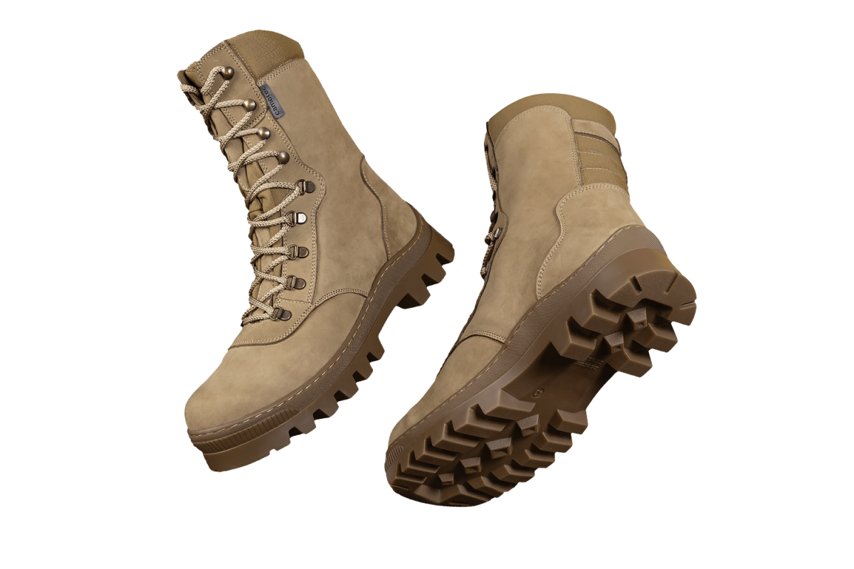 Основа берців вироблена з нубуку. Матеріал виготовлено з натуральної шкіри. Це міцний, щільний, та зносостійкий матеріал, але водночас він м'який, і приємний на дотик. Матеріал оброблено гідрофобним просоченням, яке захищає від вологи, пилу та бруду.