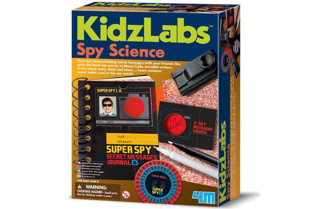 З цим набором шпигуна можна навчитися кодувати слова на шифрувальному колесі, посилати сигнали за допомогою ліхтарика та абетки Морзе. Можливо створити непромокальне шпигунське посвідчення для себе та свого таємного агента, набір секретних кодів.