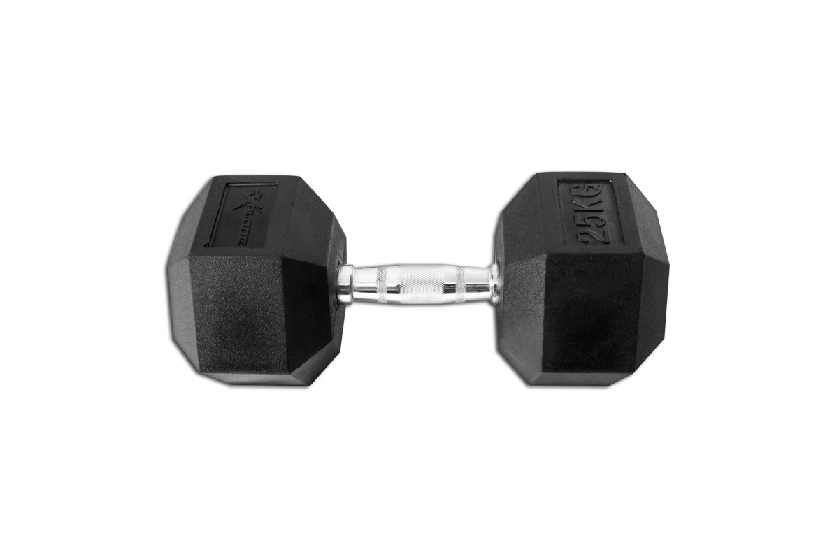 Гантель гексагональна гумова Explode PD-108 - оптимальний вибір для силових вправ та функціональних тренувань. Вантажі мають шестикутну форму та покриття із високоміцної синтетичної гуми, які забезпечують стабільність гантелі як на рівній, так і на похилій поверхні підлоги. Крім того, якісне гумове покриття захищає поверхні під час зіткнення. Шестикутна форма ваг надає гантелі стійкості, що дозволяє використовувати їх як упори для віджимань і планки. Гриф анатомічної форми має хромоване покриття з фрезерованим профілем, забезпечуючи надійне захоплення.