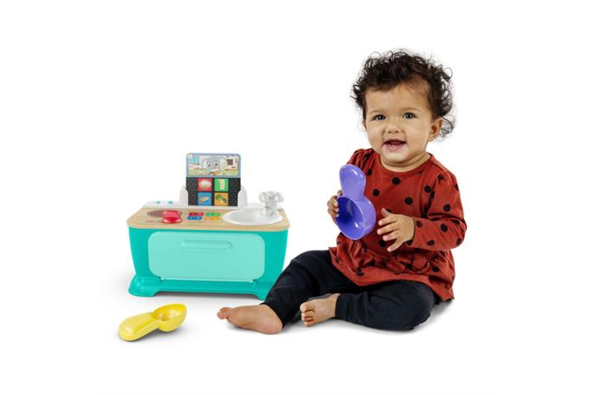 Музична іграшка Baby Einstein Плита пропонує 2 інтерактивні режими гри. Ця барвиста ігрова кухня виготовлена з деревини, сертифікованої FSC, та оснащена духовкою, раковиною та плитою, що допоможе дитині імітувати процес приготування їжі.