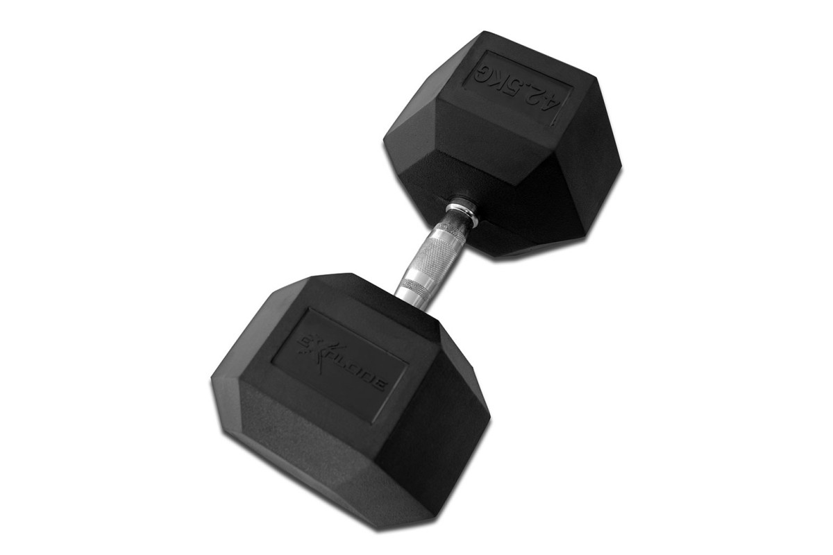 Гантель гексагональна гумова Explode PD-108 - оптимальний вибір для силових вправ та функціональних тренувань. Вантажі мають шестикутну форму та покриття із високоміцної синтетичної гуми, які забезпечують стабільність гантелі як на рівній, так і на похилій поверхні підлоги. Крім того, якісне гумове покриття захищає поверхні під час зіткнення. Шестикутна форма ваг надає гантелі стійкості, що дозволяє використовувати їх як упори для віджимань і планки. Гриф анатомічної форми має хромоване покриття з фрезерованим профілем, забезпечуючи надійне захоплення.