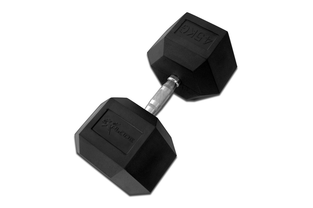 Гантель гексагональна гумова Explode PD-108 - оптимальний вибір для силових вправ та функціональних тренувань. Вантажі мають шестикутну форму та покриття із високоміцної синтетичної гуми, які забезпечують стабільність гантелі як на рівній, так і на похилій поверхні підлоги. Крім того, якісне гумове покриття захищає поверхні під час зіткнення. Шестикутна форма ваг надає гантелі стійкості, що дозволяє використовувати їх як упори для віджимань і планки. Гриф анатомічної форми має хромоване покриття з фрезерованим профілем, забезпечуючи надійне захоплення.