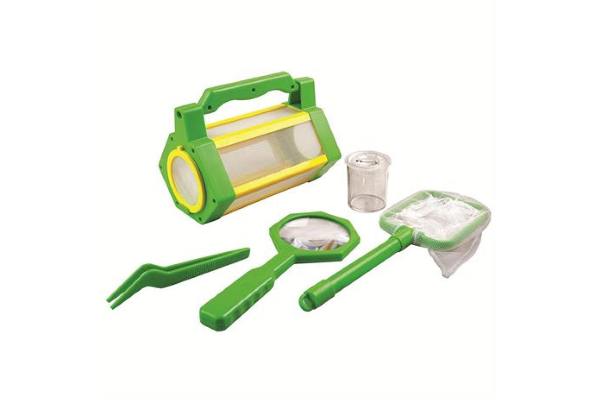 В комплекте: контейнер-переноска и баночка для насекомых, лупа, пинцет, сачок.