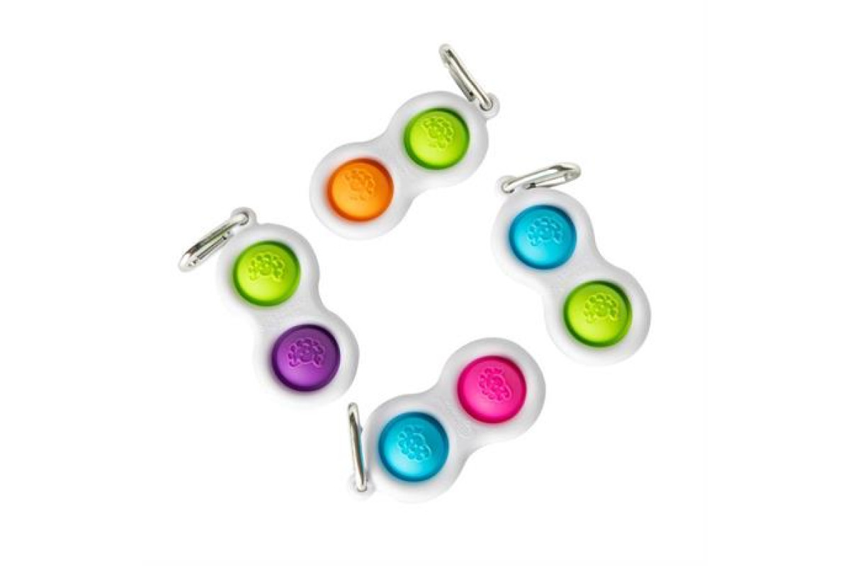 Сенсорний антистрес-брелок Fat Brain Toys Simpl Dimpl (4 кольори в асортименті) – це розвивальна іграшка, яка подарує нескінченні години веселощів! Рамка зроблена з міцного якісного пластика, що ідеально підходить для того, щоб носити в кишені або сумочці. Дві барвисті кнопки виготовлені зі 100% силікону.