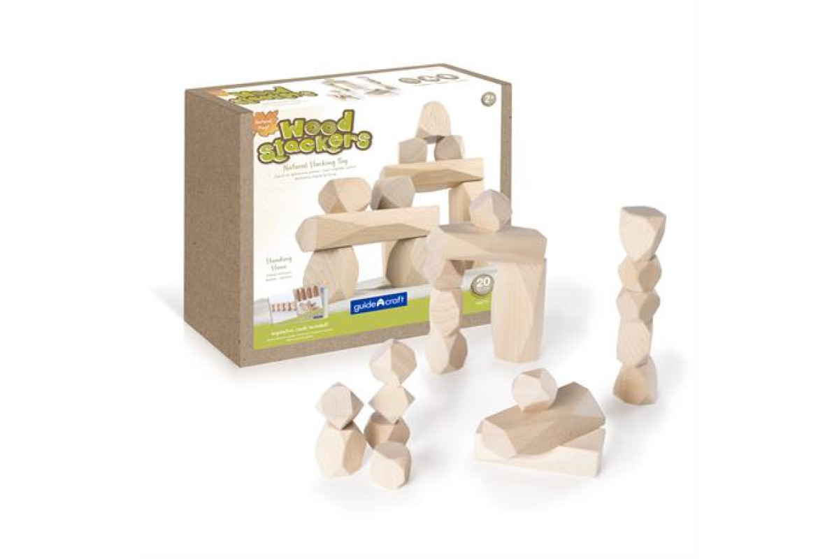 Ці «доісторичні» будівельні блоки надихають дітей використовувати натуральні матеріали для створення цікавих споруд. Кожен елемент гладко відполірований, підкреслює природну текстуру і колір дерева. Різні розміри допомагають дітям розрізняти вагу.
