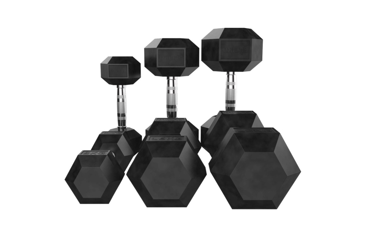 Комплект гантелей Eleiko XF 2х8, 2х16, 2х22 кг 3062807 - це зручний спосіб швидко збільшити навантаження і виконати найрізноманітніші вправи. Шестикутна форма гарантує, що гантелі не перекотяться, а також відкриває новий світ можливостей для занять з гантелями як ручки, такі як тяги на планці та L-подібні присідання. Зручна рукоятка з плавним нахилом та накаткою забезпечує надійний хват. Гума безшумна у використанні та дбайливо ставиться до підлоги спортзалу.