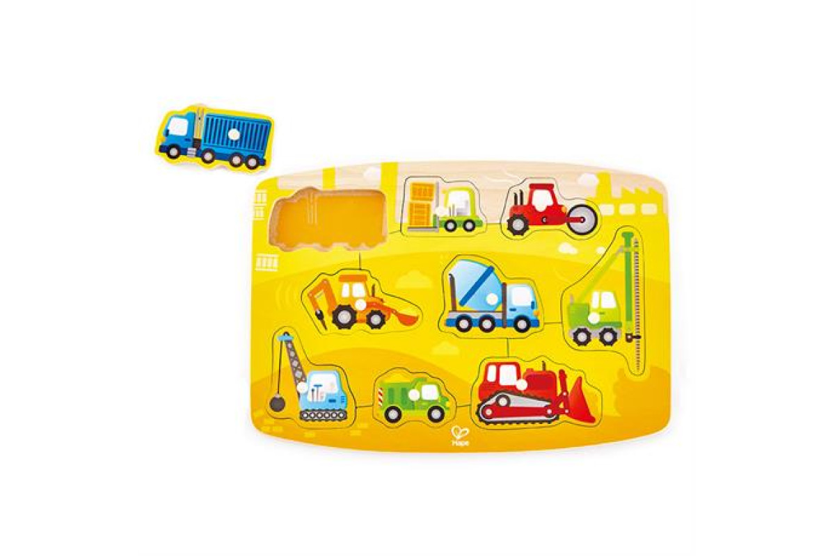 Дерев'яна рамка-вкладиш Hape Будівельний транспорт призначена для дітей віком від 2 років і особливо сподобається хлопчикам.