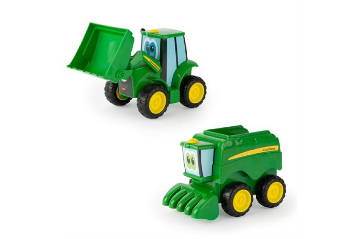 Іграшкові машинки John Deere Kids Друзі фермера 2 шт. – чудові перші іграшки для вашого маленького фермера. Вони розроблені для дітей від 18 місяців до 3 років. В іграшкової техніки є цікаві функції, які сподобаються малюкам. Робочі елементи та колеса машинок рухливі. В ігровому наборі – комбайн і трактор. Батарейки не потрібні.