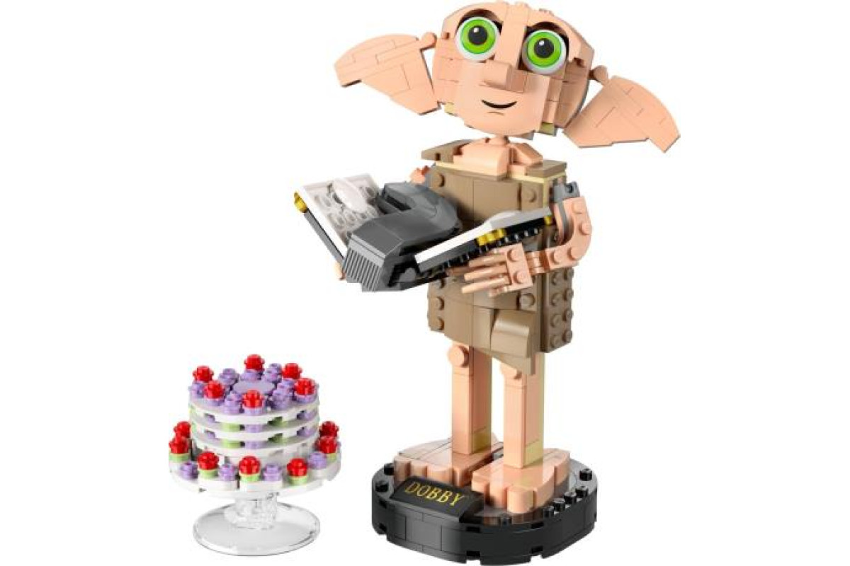 Порадуйте шанувальника Гаррі Поттера першою в історії LEGO® моделлю Добі, домашнього ельфа з кубиків. Миттєво впізнавана фігурка має голову, яку можна змінювати, а також руки й пальці, щоб Добі міг тримати культові деталі, що входять до набору. Серед аксесуарів – детальна модель шкарпетки Гаррі Поттера, яку Гаррі використав, щоб звільнити Добі, у щоденнику Тома Редла, а також пудинг тітки Петунії, який «літає», щоб надихнути на спогади про класичні сюжети.
