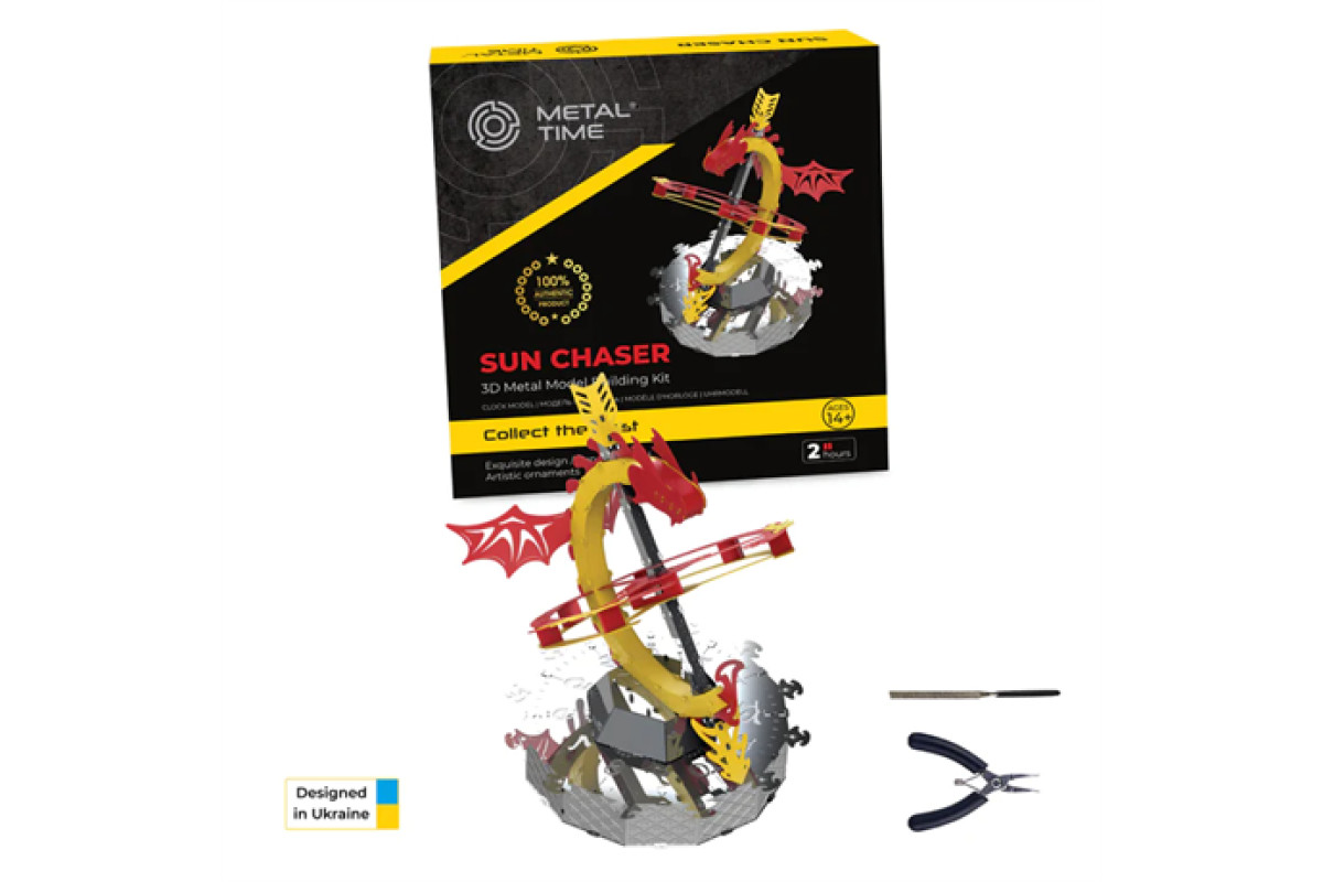 Команда Metal Time, створюючи Sun Chaser, надихалася історією спостережень людини за часом та азійською міфологією. Звичайно, основою сонячного годинника стала нерухома деталь, яка кидає тінь на шкалу часу, але наші інженери та дизайнери вирішили вдосконалити цю конструкцію. В результаті вийшов арт-об'єкт, який принесе масу задоволення як любителям технічної творчості, так і поціновувачам прекрасного.