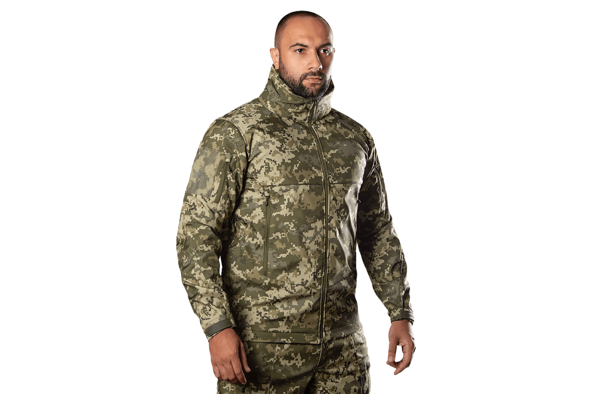 Куртка вироблена з оригінальної тканини SoftShell зі справжньою мембраною. Головною перевагою цього матеріалу є ідеальне утримання балансу між захистом від холоду, вологи й хорошою циркуляцією повітря.