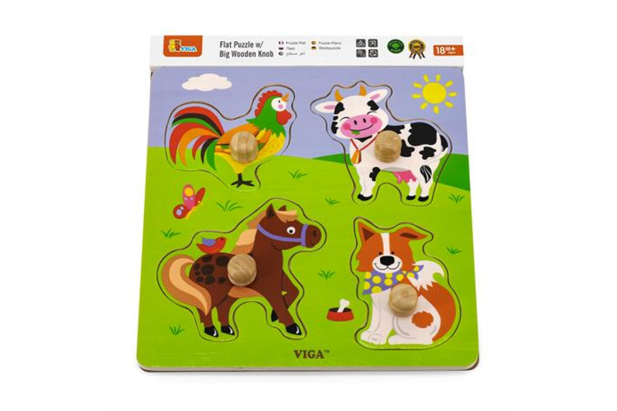 Як зацікавити малюків корисною грою? Дайте їм для цього цікавий матеріал – дитячі пазли. Дерев'яна рамка-вкладиш від Viga Toys Звірята на фермі створена для дитини від 18 місяців з урахуванням особливостей віку.