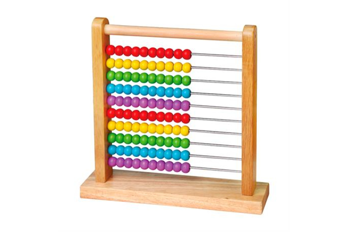 Барвиста рахівниця виконана з високоякісної деревини, містять 10 рядів по 10 кісточок. Підставка знизу прогумована, металеві стрижні міцні й рівні. Чудовий посібник для знайомства з азами арифметики, підходить для групових занять.