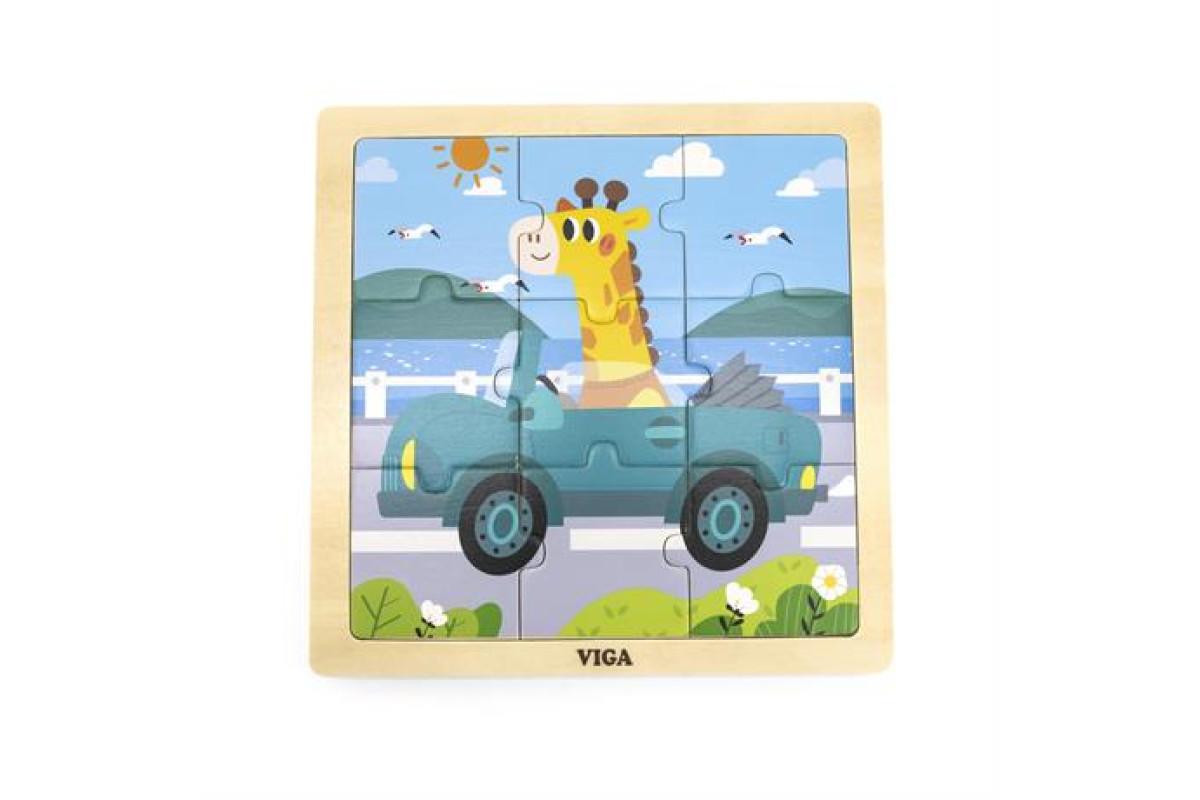 Дерев'яний пазл Viga Toys Автомобіль с жирафою 9 ел. (44629)