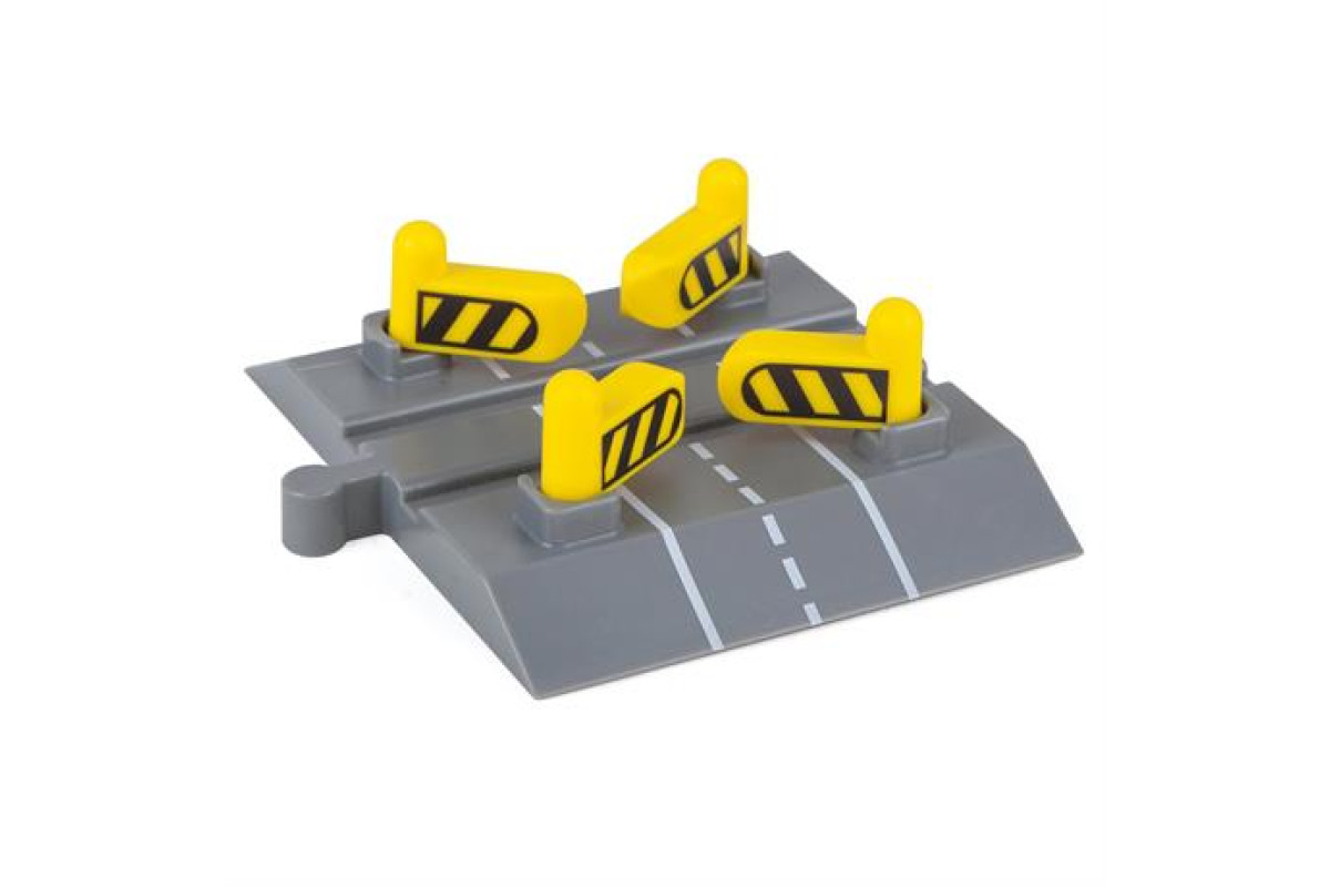Захистіть іграшкові машинки, вантажівки та пішоходів, коли поїзд мчить містом, за допомогою цього залізничного переїзду. Коли потяг із пихтінням проїжджає через переїзд, ворота зачиняються, щоб машини не заважали!