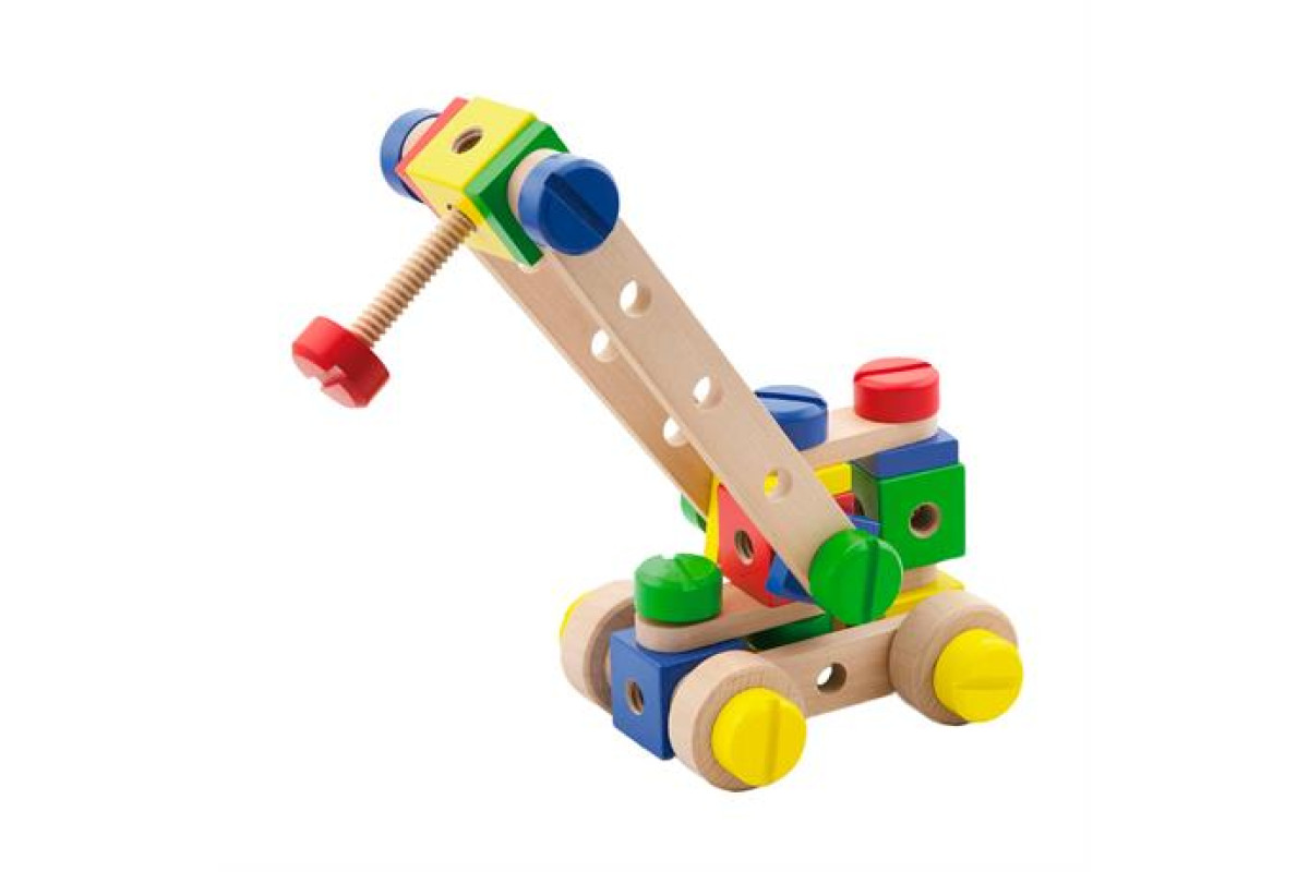 З дерев'яного конструктора Viga Toys, 53 елементи, можна побудувати машинку, вертоліт, будівельний кран, собачку, робота і багато інших моделей реальних або придуманих малюками об'єктів. Розвивальний набір буде цікавий дітям від 3 років дошкільного віку.