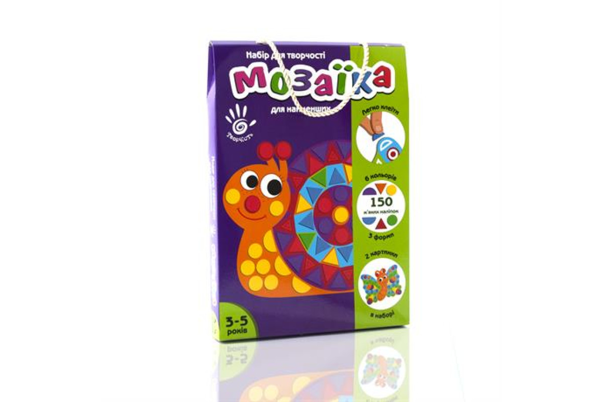 Комплектація: 2 малюнки, 150 м’яких наліпок (6 планшетів з різноколірною м’якою мозаїкою).