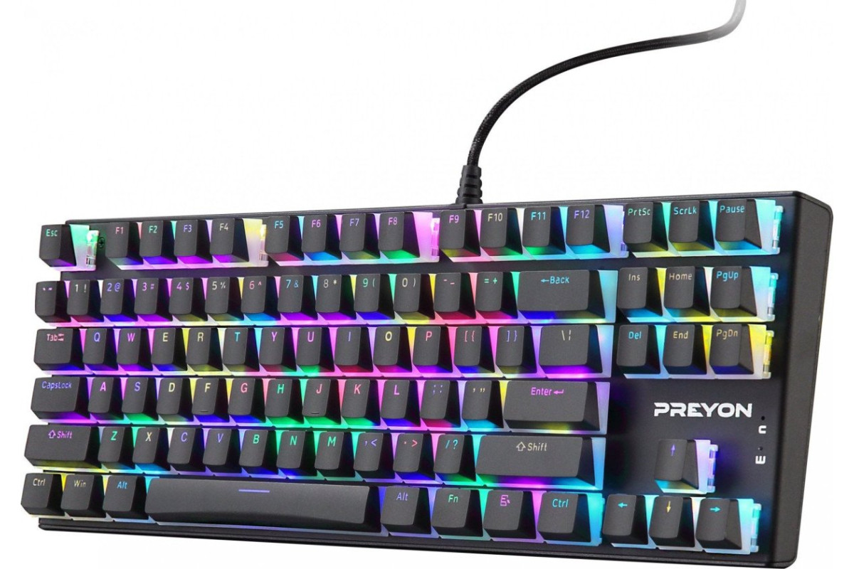 PREYON Blue Blitz Claw — це механічна клавіатура без цифрової клавіатури, яка забезпечує більше простору для переміщення миші та більшу свободу використання обладнання. Таким чином, жоден суперник не буде проблемою. Менший розмір клавіатури також полегшує транспортування, наприклад, між ігровими турнірами. Такий компактний дизайн неодмінно збільшить комфорт гри, особливо на маленькому столі!