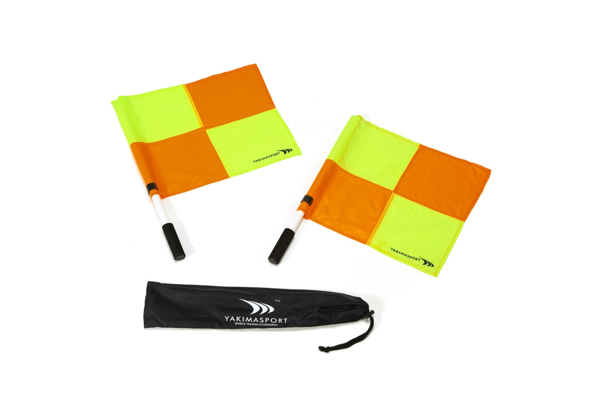 Суддівські прапорці Yakimasport набір 2 шт помаранчево-салатові з чохлом для зберігання використовують бічні футбольні арбітри, під час проведення офіційних матчів.