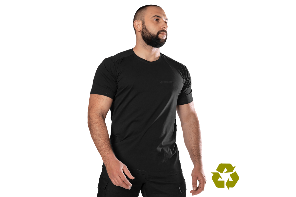 Футболка вироблена з тканини Sorona® - це новий стандарт інновацій серед технологічних тканин. Основа тканини - активні целюлозні волокна рослинного походження, тобто виготовлені з природних матеріалів. Вони мають природну структуру, що ефективно керує швидким транспортуванням вологи від тіла, це зберігає ваше тіло приємно прохолодним та сухим при фізичній активності.