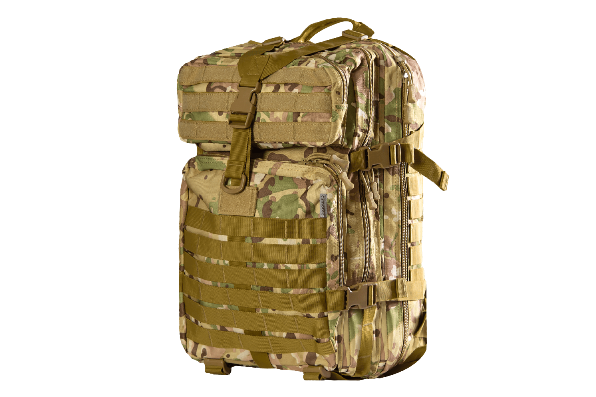 Тактичний, місткий рюкзак розроблений спеціально для воєнізованих структур. Рюкзак має ряд конструктивних особливостей, таких як стропи MOLLE, пулери на застібках, D-кільця, а також додаткові лямки.