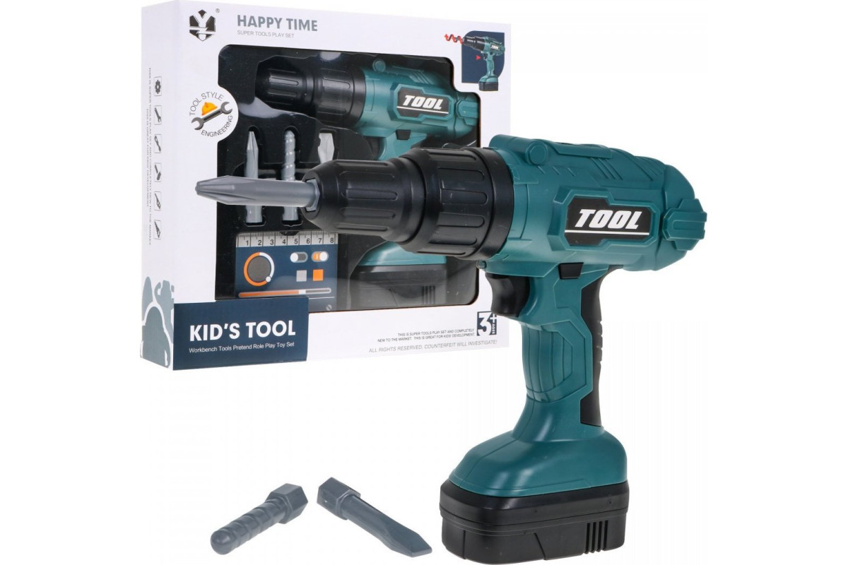 Для кожної дитини, яка любить ремонтувати та допомагати під час ремонту, дриль/шуруповерт із набором змінних наконечників стане справжнім задоволенням. Він виконаний надзвичайно реалістично і навіть має знімний акумулятор , як у дорослих інструментах. Іграшка працює від 2-х батарейок АА, які в комплект не входять.