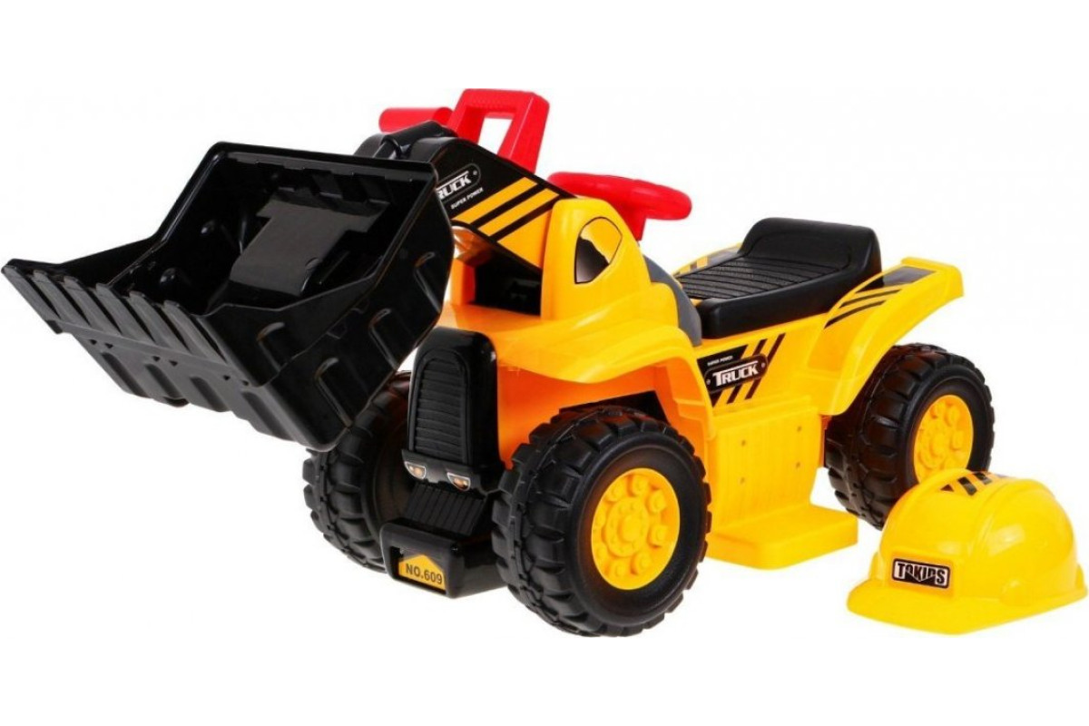 Машинка їздить в усіх напрямках, живиться від акумулятора 6V/4Ah. Дитина керує бульдозером за допомогою керма, яке з'єднане з поворотними колесами. Великий ківш на плечі розміщений спереду машинки. Керувати ним малюк буде за допомогою спеціальної ручки та важеля. Це дасть можливість зачерпнути, наприклад, пісок або іграшки у відро, що зробить поїздку більш привабливою.