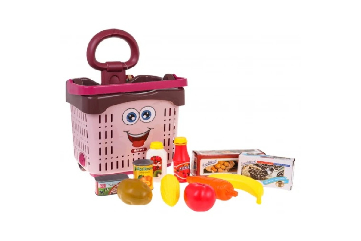 Кошик для покупок має щасливе обличчя на передній частині кошика , що додає йому шарму та змушує дітей охоче тягнутися до нього. Ручка регулюється , що дозволяє підлаштувати її під комфорт дитини.