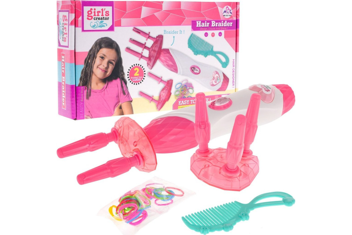 Стимулюючий творчість, цей набір для укладання волосся з машинкою для плетіння косичок ідеально підійде дівчаткам віком від 5 років. До набору входить проста у використанні машинка зі змінною насадкою, яка дозволяє швидко заплітати волосся різними способами. З подвійною насадкою можна створювати ефектні коси лише з 2 пасом волосся, а з потрійною насадкою - традиційне плетіння з 3 пасмами. Бритва працює від 2 батарейок типу АА (батарейки не входять до комплекту).