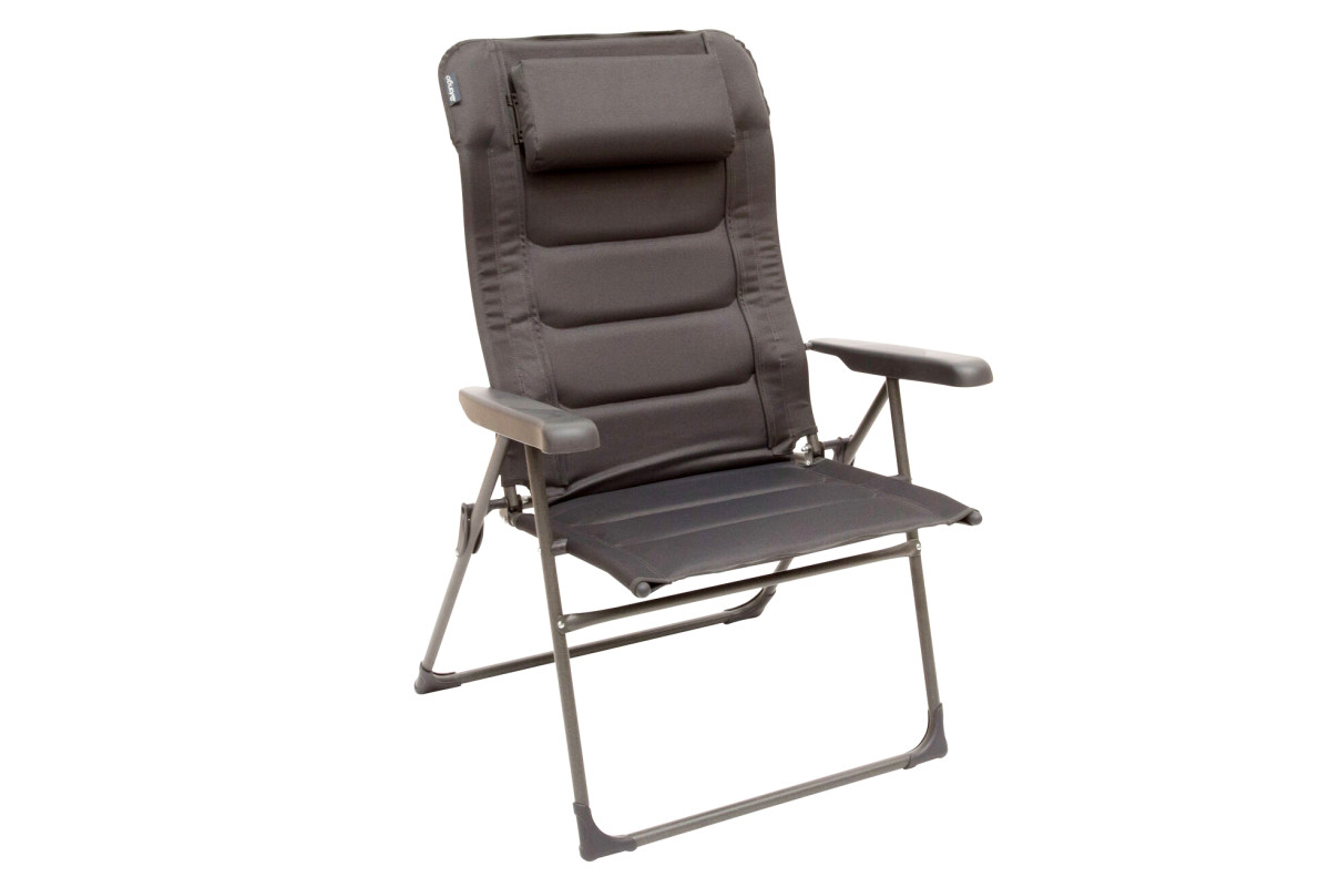 Компанія Vango представила оновлену модель розкладаного крісла Hampton Grande DLX із тканини DuoWeave та новим сталевим каркасом. Модель виготовлена в сучасному дизайні, має розкладану м'яку спинку на сім положень, також м'яке сидіння з глибокою посадкою, що сприяє розслабленню м'язів спини та тазу. Додаткове підтримування шиї забезпечує знімний підголівник, який легко трансформується як поперековий валик після довгих фізичних навантажень на спину. Жорстка конструкція стільця Hampton Grande DLX та ударостійкі з'єднувачі з ABS пластику дадуть змогу витримати навантаження до 140 кг. Модель ідеально підходить для відпочинку на природі, для риболовлі та полювання, для заміського будинку та пікніка в парку.