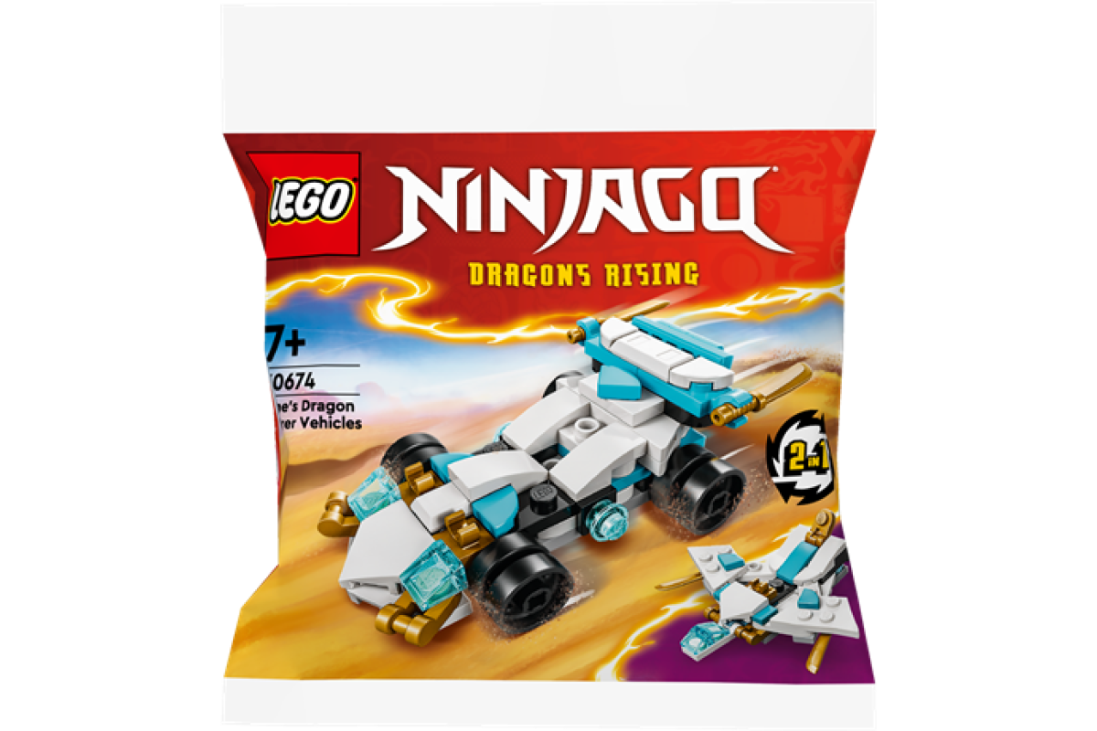Представляємо тобі конструктор LEGO Ninjago "Суперсильні транспортні засоби дракона Зейна" (30674). Цей набір перенесе тебе у світ ніндзя, де ти зможеш відтворити захопливі сцени з мультсеріалу "Ніндзяґо: Дракони підіймаються".