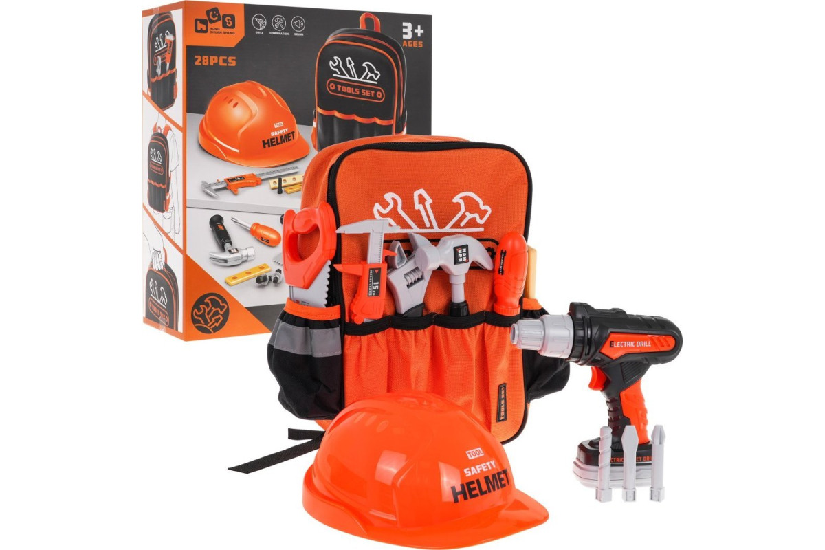 Хіт набору - інтерактивна викрутка та дриль , яка має 3 змінних наконечника. Вона також має реалістичний знімний акумулятор і живиться від 2 батарейок типу АА, які не входять у комплект. Крім того, діти гратимуть, серед іншого: викрутка зі змінними наконечниками , пилка, гайкові ключі, молоток і набір шурупів і дощок для їх закручування.