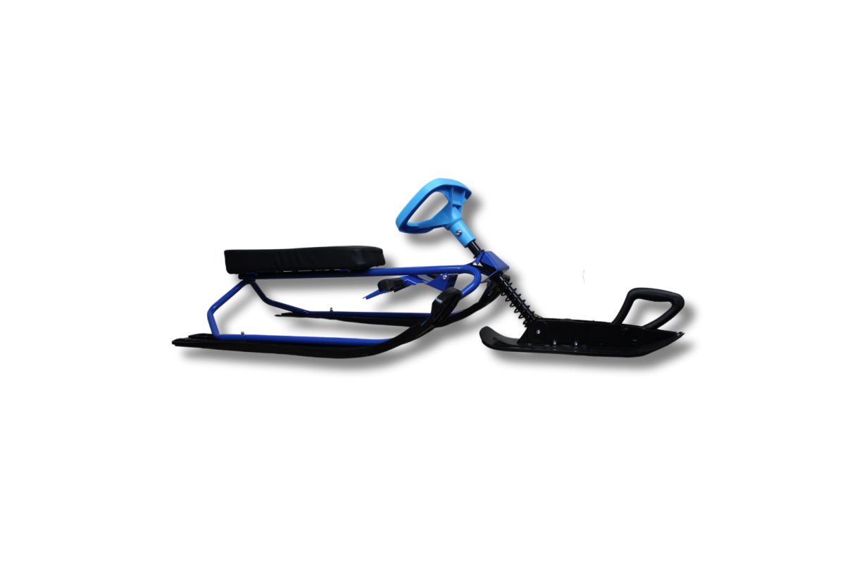 - Продумана конструкція. Міцна сталева рама, ножне гальмо та амортизатор забезпечать стабільність на поворотах. Широкі лижі з морозостійкого пластику із загнутими краями, допомагають легко долати перешкоди на снігових схилах.
