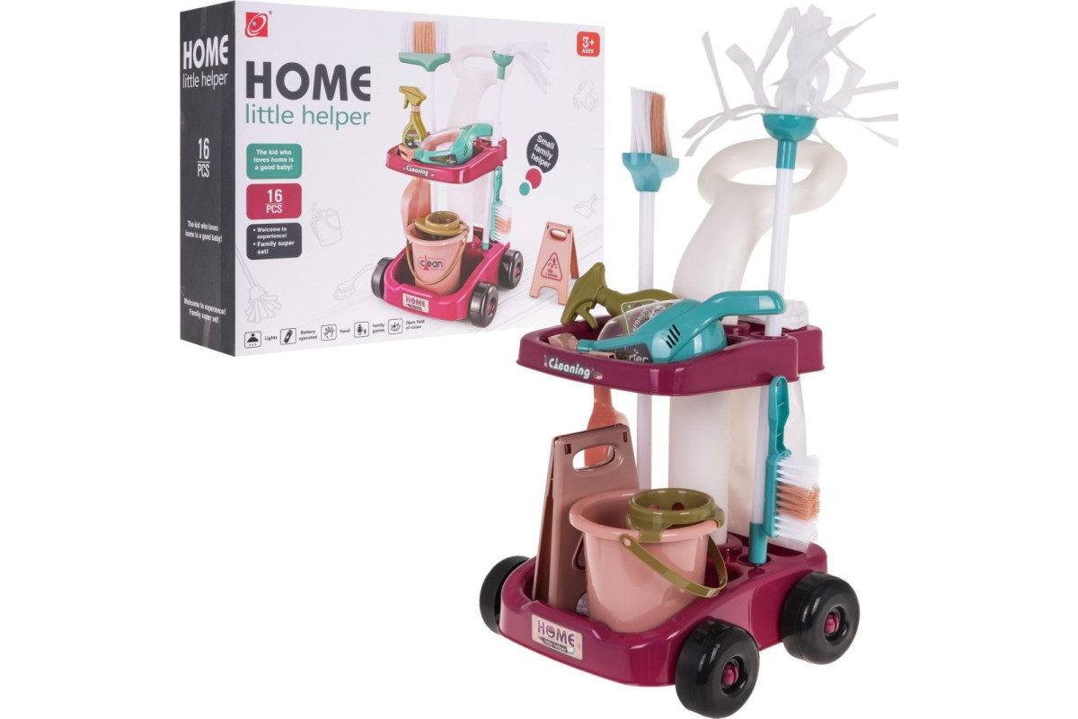 Створений з особливою увагою до деталей, повний набір для прибирання з інтерактивним ручним пилососом призначений для дітей від 3 років. Виготовлений з високоякісних матеріалів, він гарантує повну безпеку під час гри. До набору входить візок, оснащений великими стійкими колесами та зручною ручкою для легкого керування. Крім того, у візку є 2 практичні полички для зберігання всіх необхідних для прибирання аксесуарів.