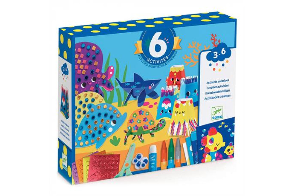 Набір для творчості Djeco Підводний світ складається з багатьох проєктів з морської тематики. Кожен знайде щось для себе! Годинник заняття рукоділлям та малюванням, щоб відкрити різні творчі техніки.