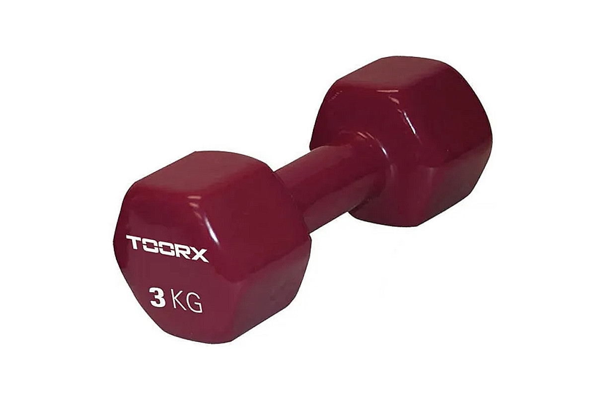 - Гантелі для фітнесу Toorx Vinyl доступні у широкому діапазоні ваг від 0,5 до 6 кг для задоволення різних потреб тренувань.