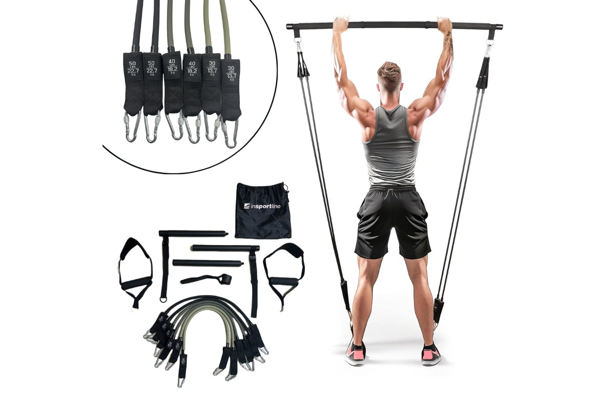 Обмежений простір вдома, але ви мрієте тренувати все тіло? Стійка для пілатесу та тренувань inSPORTline Ancairo з еспандерами та дверним кріпленням — ідеальне рішення для вас! В елегантному чорному чохлі ви знайдете набір зі складного турніка, еспандерів різного опору, рукоятки з ременями для ніг і, нарешті, кріплення для дверей. За допомогою цього набору ви зміцните та розтягнете кожен м'яз свого тіла, заощадивши при цьому багато місця.
