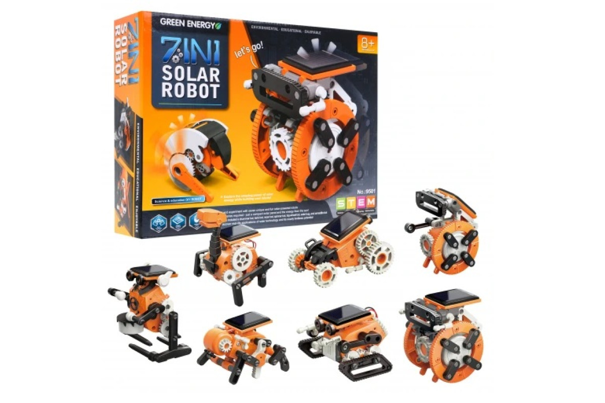 Набір із 7 сонячних роботів підкорить серце кожного юного дизайнера та майбутнього інженера. Діти зможуть випробувати себе в самостійному створенні моделей і дізнатися секрети технології отримання енергії сонця. Іграшка рекомендована для віком від 8 років, але неодмінно сподобається і старшим дітям.
