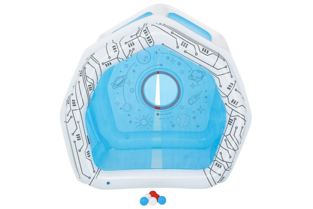 Надувний дитячий майданчик Bestway перетворить ваш сад і кімнату в справжній космічний центр. Ігровий майданчик космічної станції неодмінно порадує вашого малюка і стане його улюбленим місцем для ігор. Гра в сортування мʼячів на бічній стінці розважатиме вашу дитину годинами.