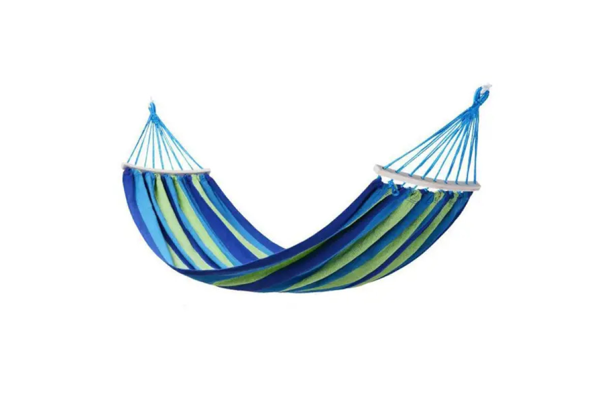 Гамак підвісний тканинний з планкою SJ-0010-2BL оснащений дерев’яною планкою, яка сприяє рівномірному розподілу навантаження та забезпечує зручне розташування під час відпочинку. Полотно виготовлене з щільної бавовняної тканини, стійкої до розтягування та зношування, що дозволяє використовувати гамак протягом тривалого часу.